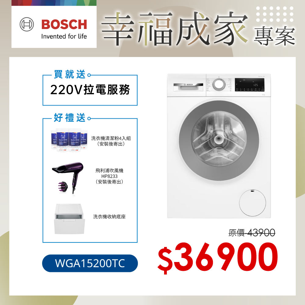 【BOSCH】10公斤去漬抗敏滾筒洗衣機 WGA15200TC【含運+拆箱定位+免費220V拉電】