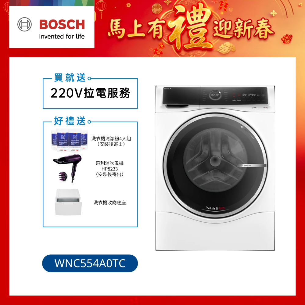 【BOSCH】10公斤三效極淨洗脫烘洗衣機 WNC554A0TC【含運+拆箱定位+免費220V拉電】