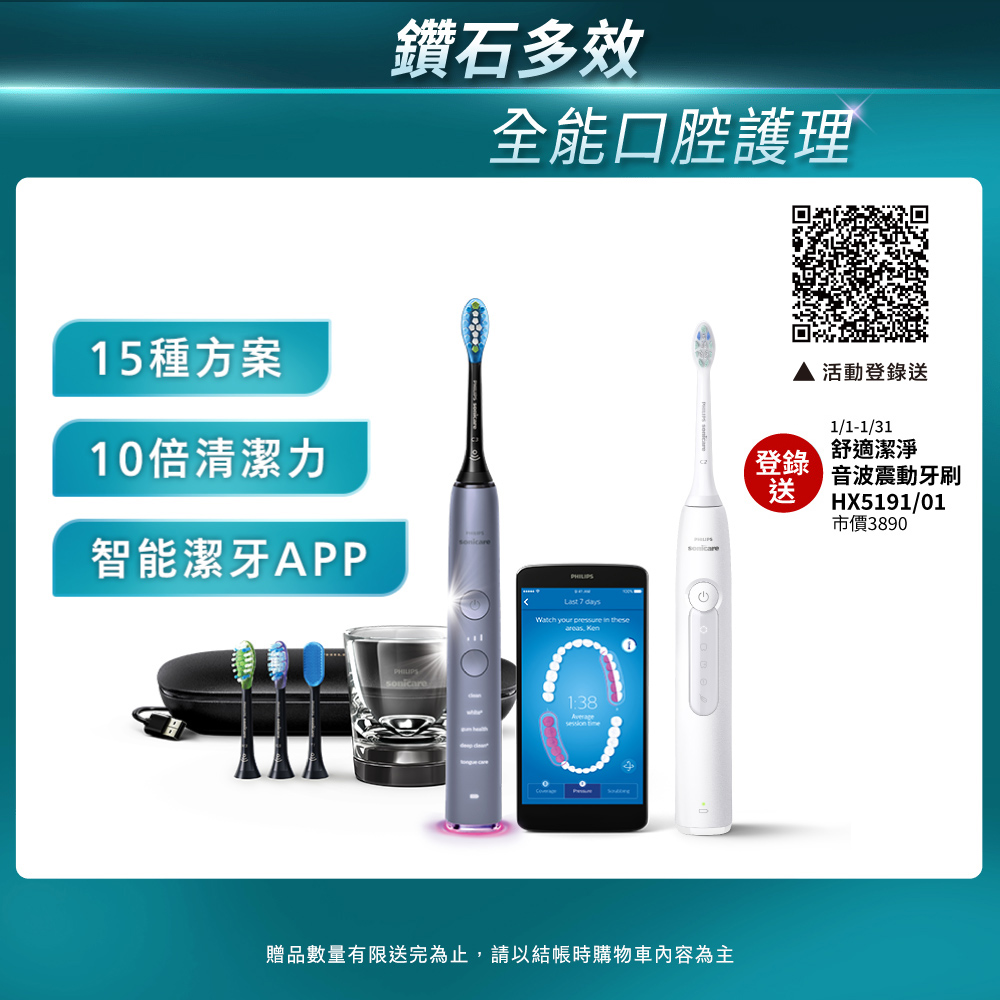 【Philips飛利浦】官方直營 Sonicare 鑽石靓白智能音波震動電動牙刷HX9924/02