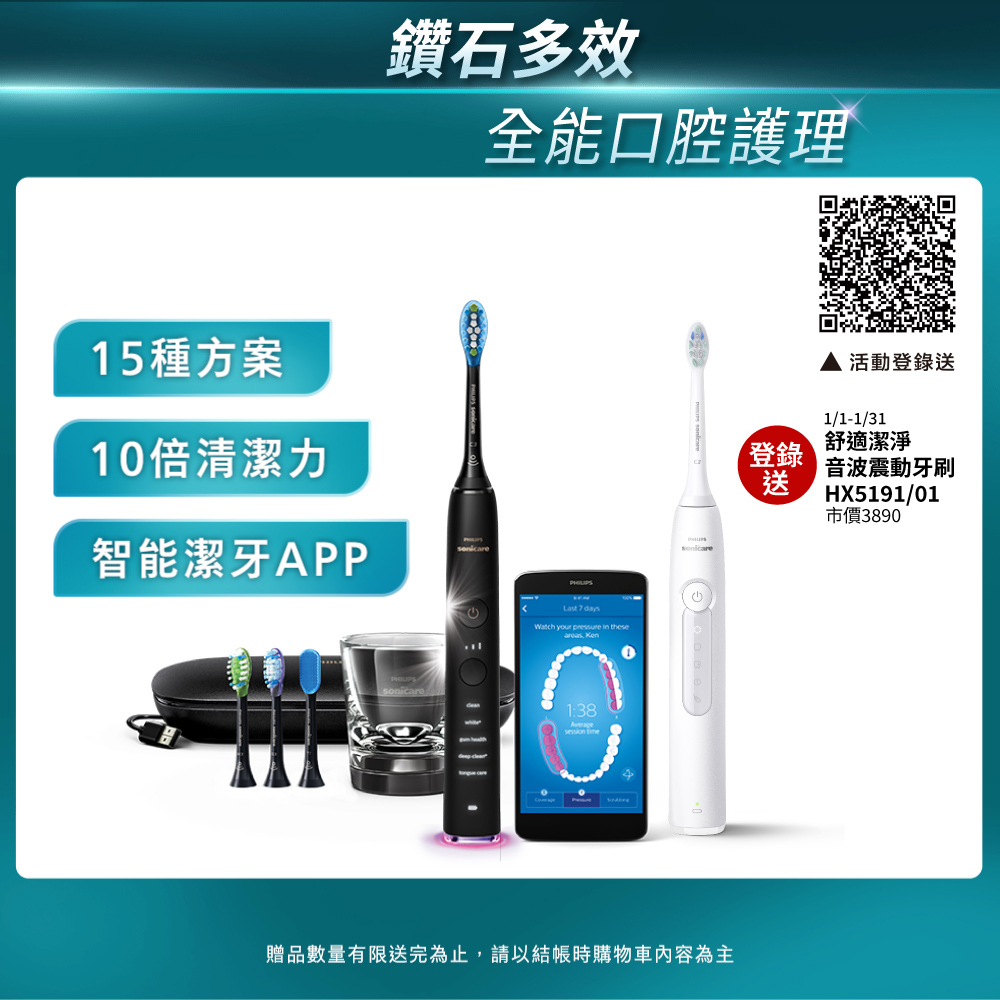 【Philips 飛利浦】官方直營 Sonicare Smart 鑽石靚白智能音波震動電動牙刷HX9924/12(爵士黑)