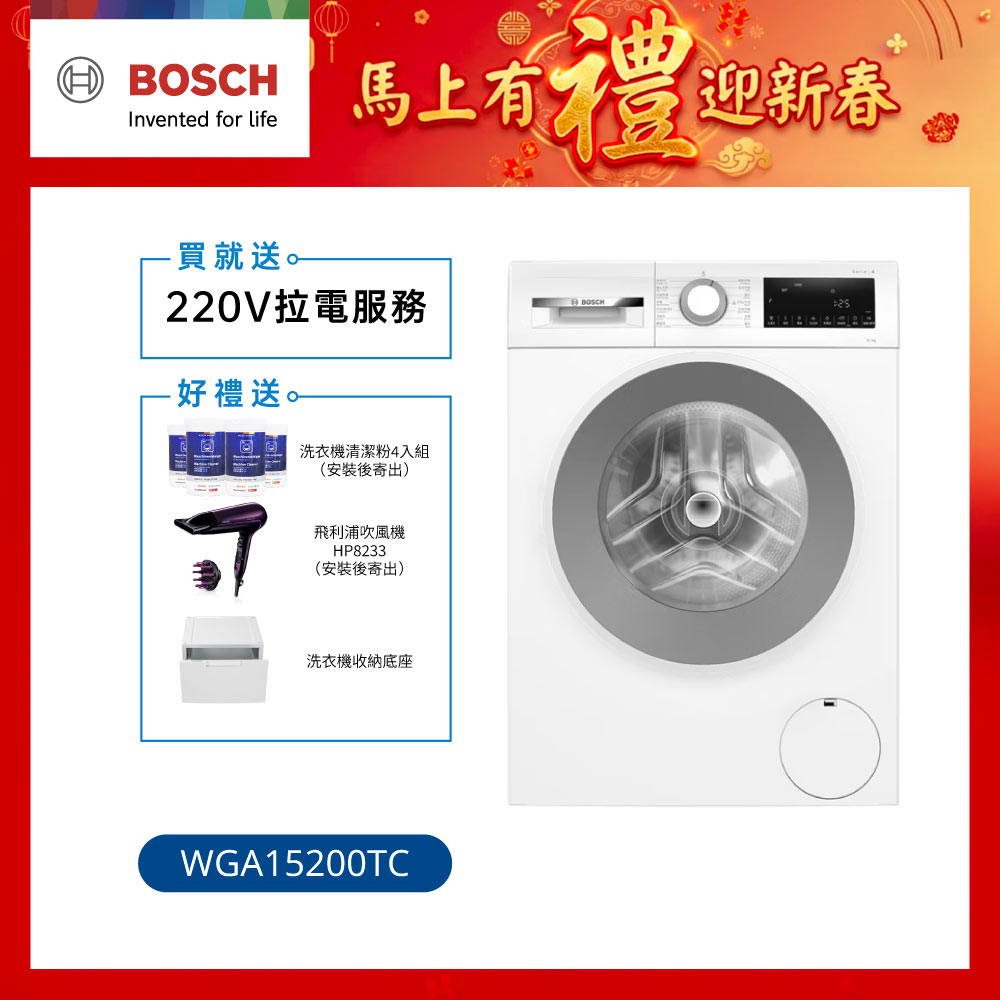 【BOSCH】10公斤去漬抗敏滾筒洗衣機 WGA15200TC【含運+拆箱定位+免費220V拉電】