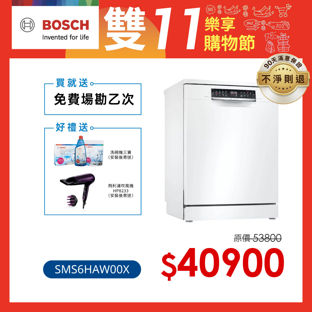 【BOSCH】6系列 60公分獨立式洗碗機 13人份(SMS6HAW00X)【含運+標準安裝】
