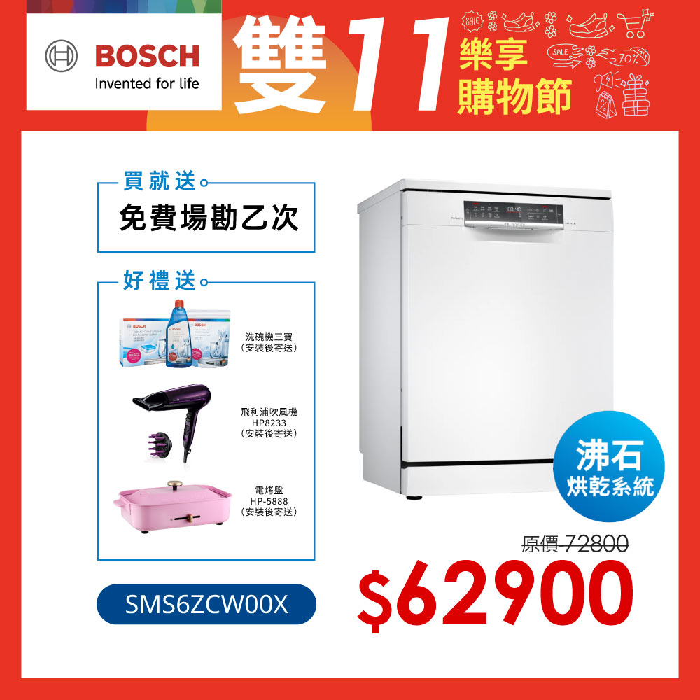 <預購>【BOSCH】6系列 60公分沸石獨立式洗碗機 14人份 (SMS6ZCW00X)【含運+標準安裝】