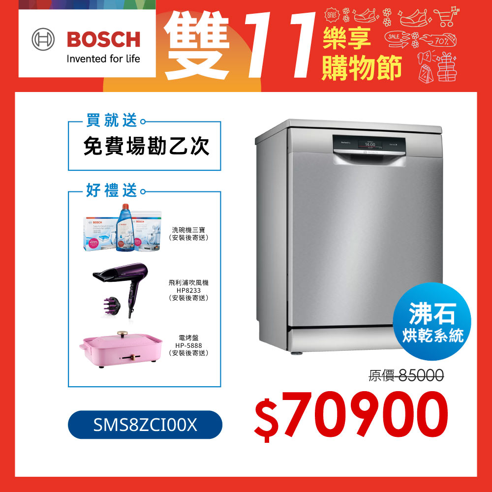【BOSCH】8系列 60公分沸石獨立式洗碗機 14人份 (SMS8ZCI00X)【含運+標準安裝】