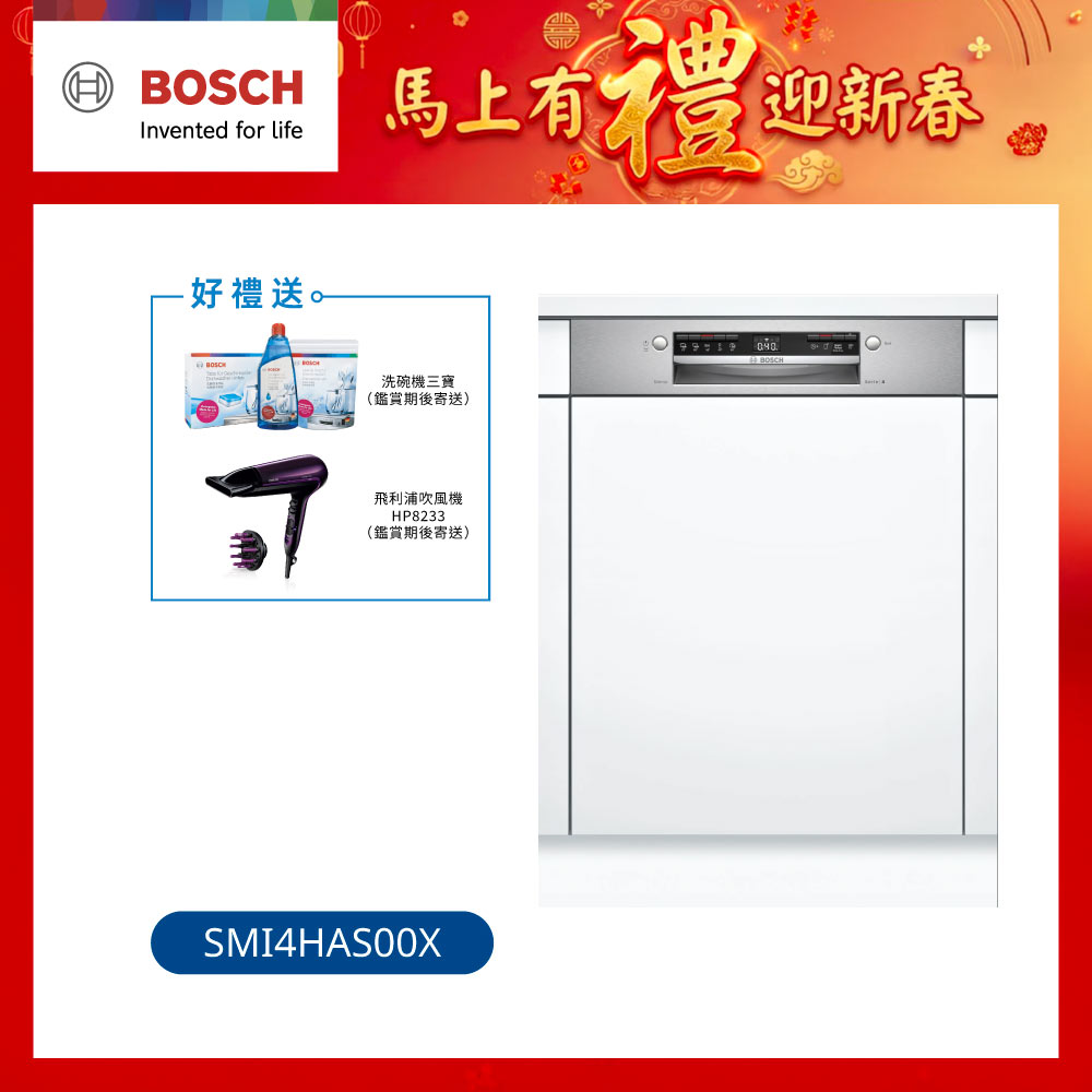 【BOSCH 博世】半嵌式洗碗機 SMI4HAS00X 13人份