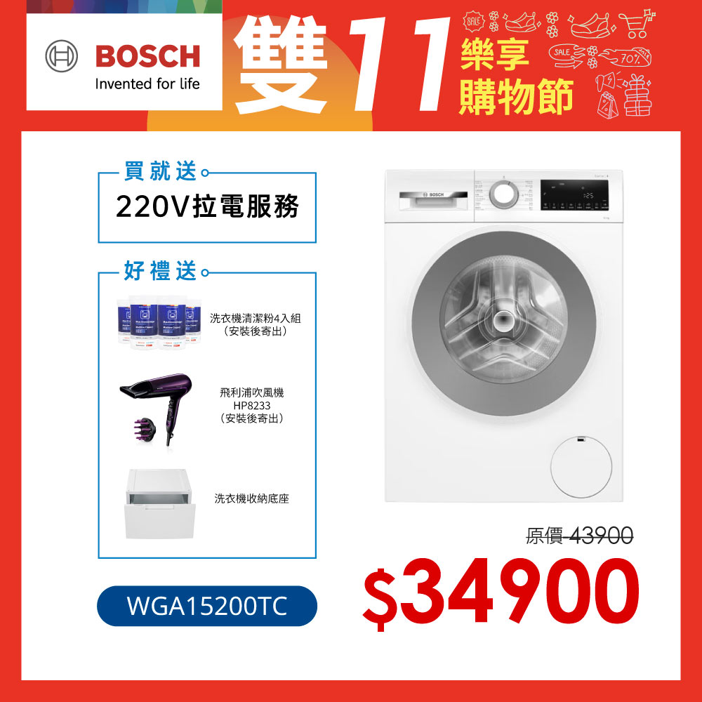 【BOSCH】10公斤去漬抗敏滾筒洗衣機 WGA15200TC【含運+拆箱定位+免費220V拉電】