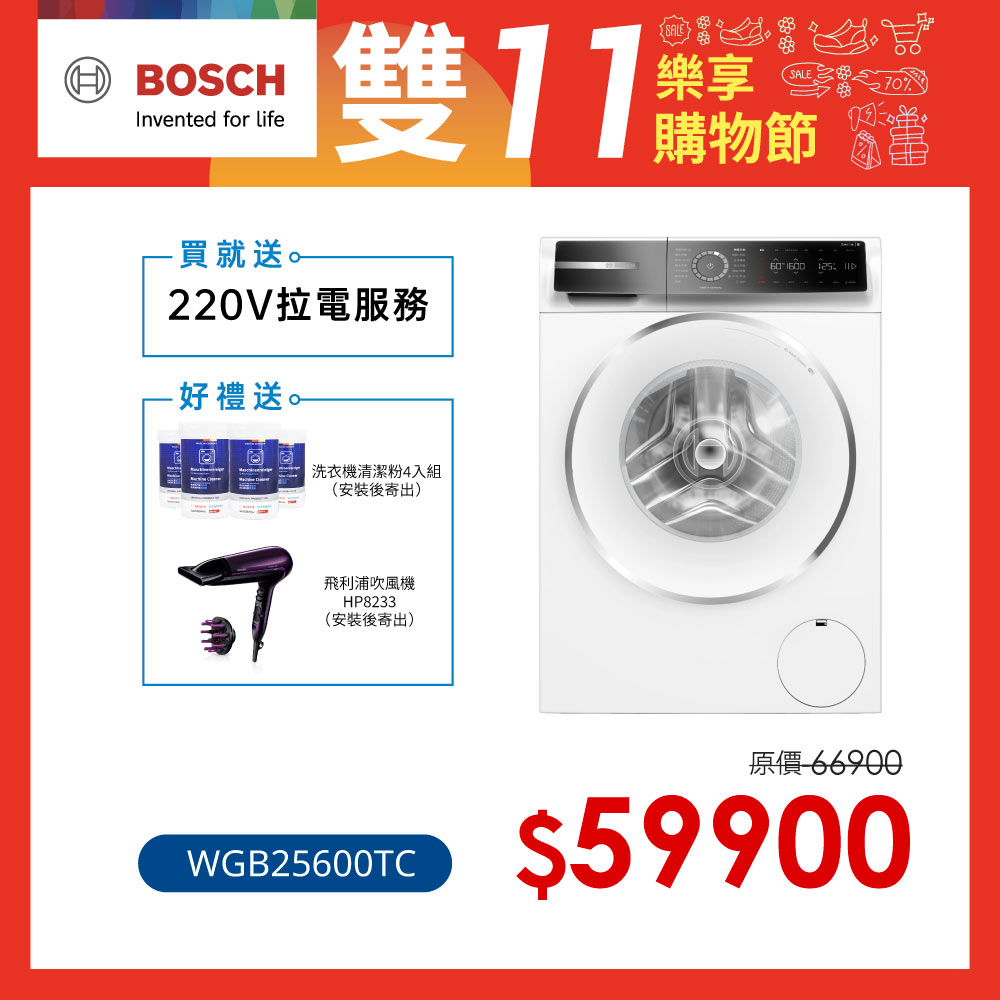 【BOSCH】10公斤蒸氣除皺滾筒洗衣機(左開-德國製造) WGB25600TC【含運+拆箱定位+免費220V拉電】