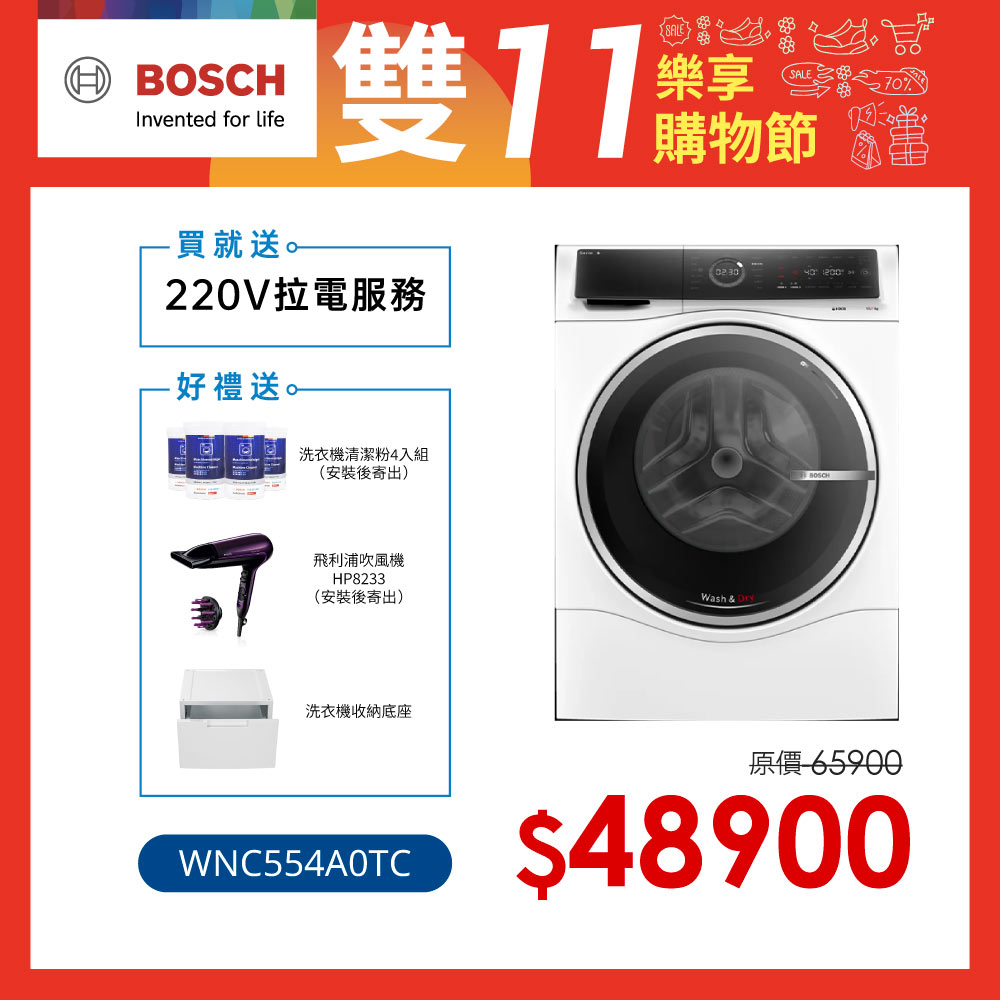 【BOSCH】10公斤三效極淨洗脫烘洗衣機 WNC554A0TC【含運+拆箱定位+免費220V拉電】