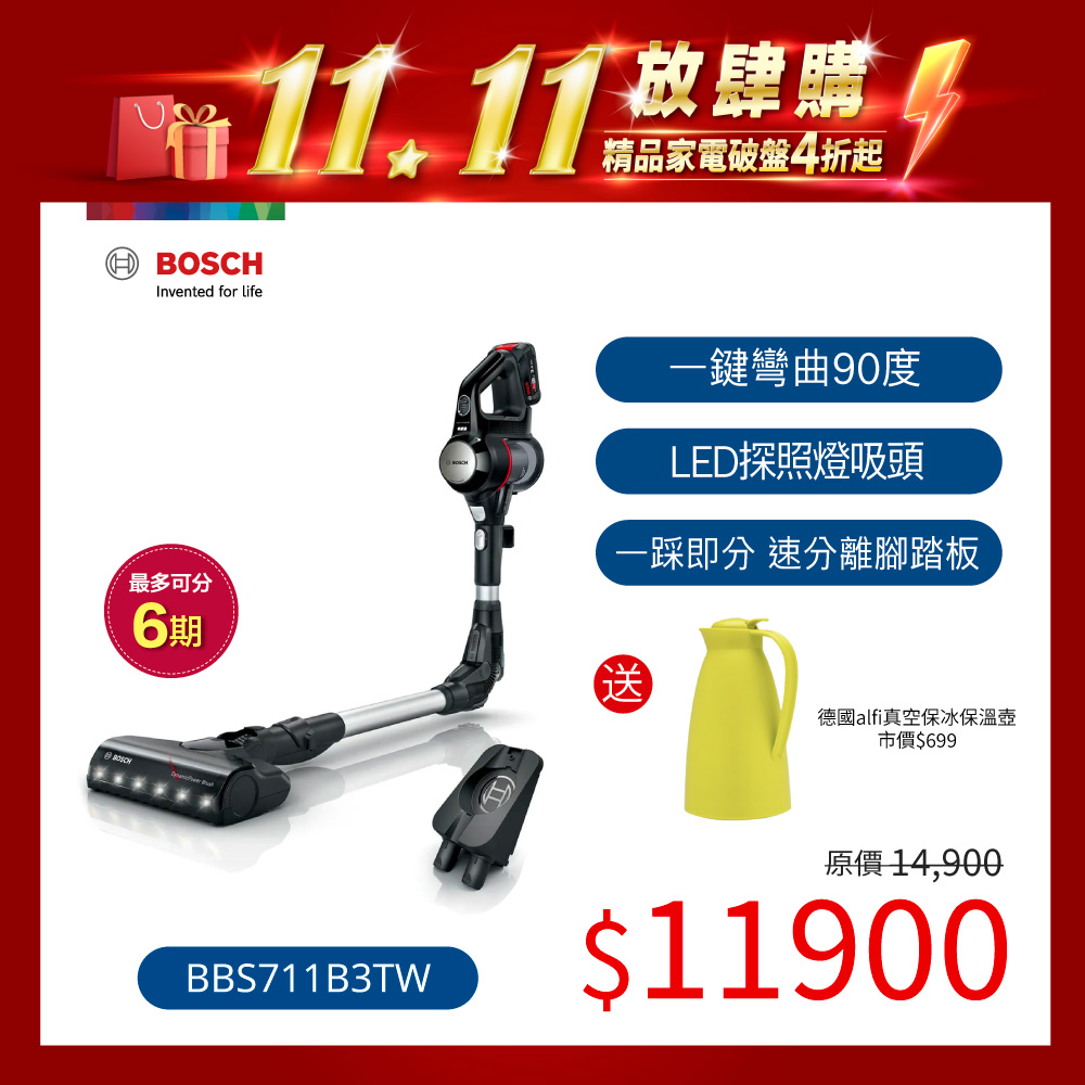 【1111 放肆購】BOSCH 博世 Unlimited 7 免彎腰無線吸塵器BBS711B3TW