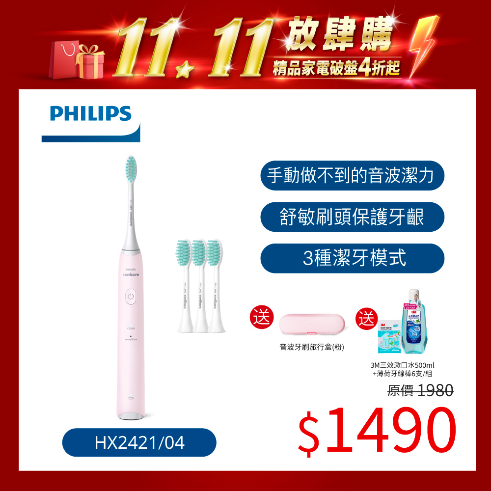 【1111 放肆購】Philips 飛利浦 Sonicare 音波震動/電動牙刷HX2421/04(送3入刷頭HX2023/02)