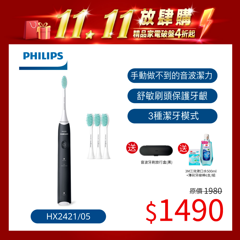 【1111 放肆購】Philips 飛利浦 Sonicare 音波震動/電動牙刷HX2421/05(送3入刷頭HX2023/02)