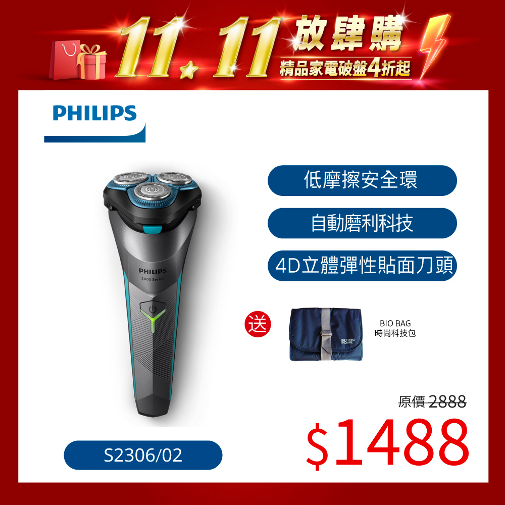 【1111 放肆購】Philips 飛利浦電競2系列電動刮鬍刀/電鬍刀 S2306/02