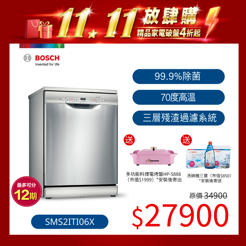 【1111 放肆購】BOSCH 2系列 60公分獨立式洗碗機 12人份(SMS2ITI06X)【含運+標準安裝】