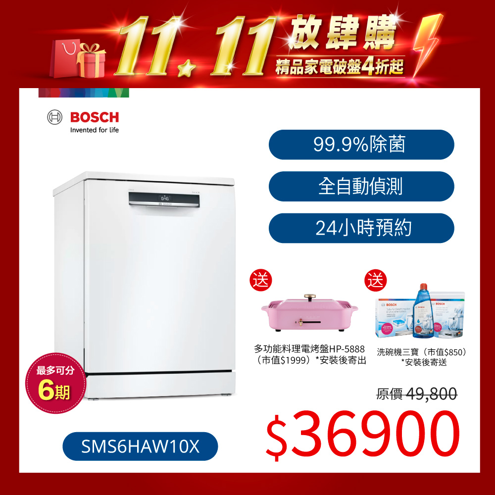 【1111 放肆購】BOSCH 6系列 60公分獨立式洗碗機 13人份 (SMS6HAW10X)