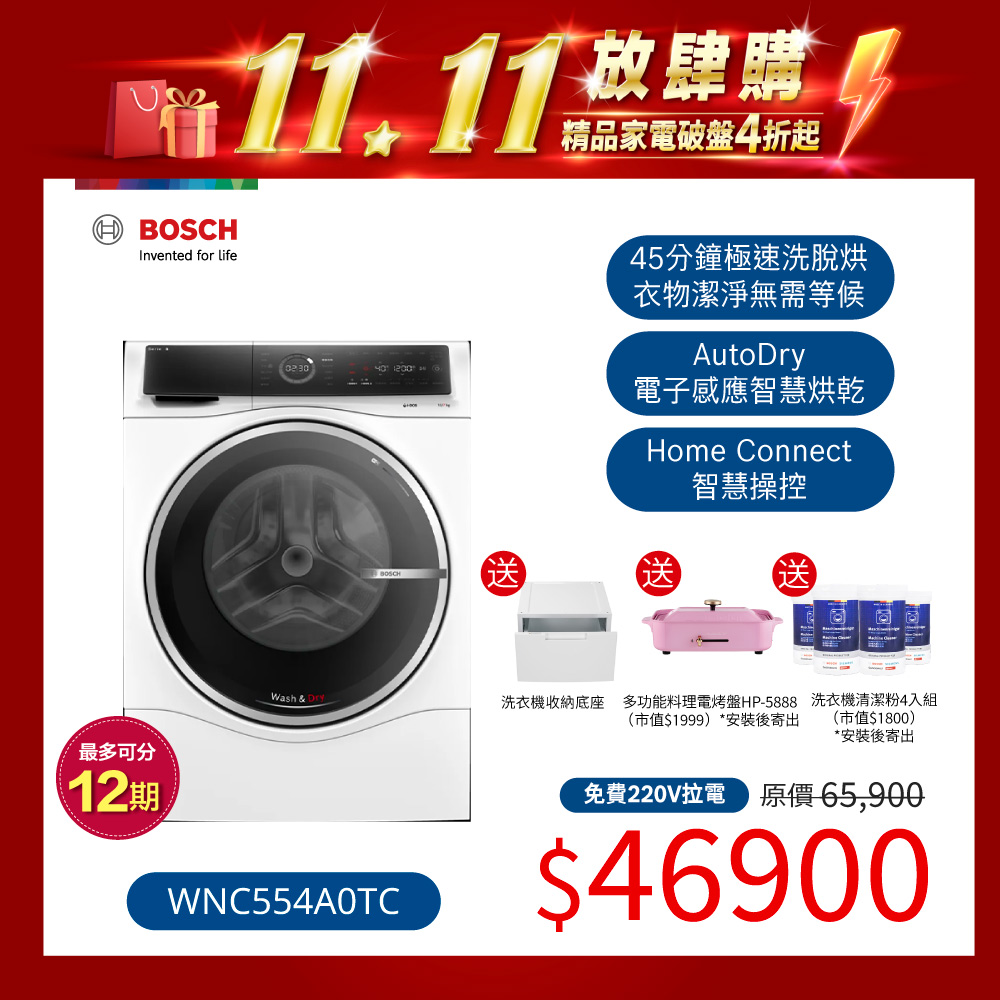 【1111 放肆購】BOSCH 10公斤三效極淨洗脫烘洗衣機 WNC554A0TC【含運+拆箱定位+免費220V拉電】