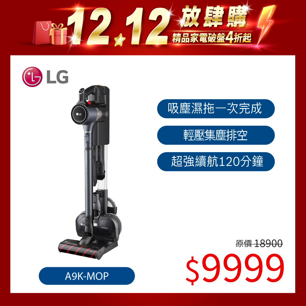【1212 放肆購】LG 樂金 CordZero A9 K系列 WiFi集塵壓縮濕拖無線吸塵器A9K-MOP(寵物型) (鐵灰)