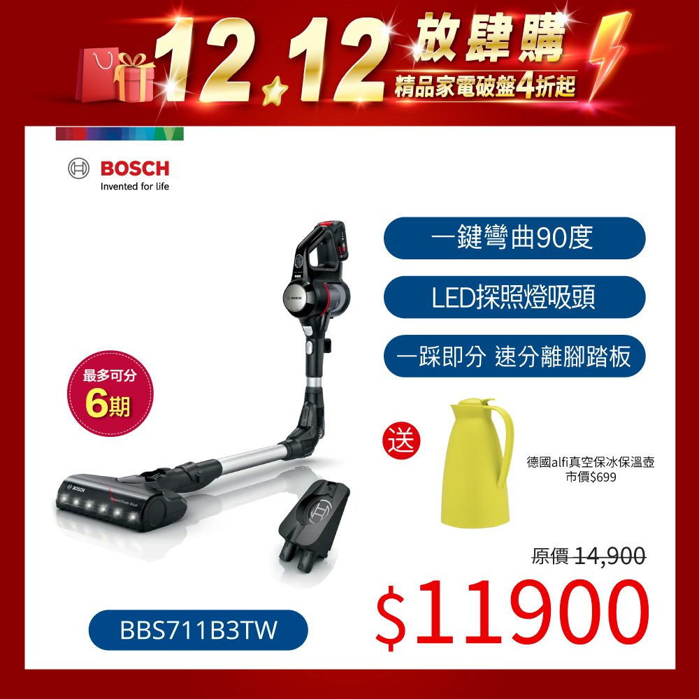 【1212 放肆購】BOSCH 博世 Unlimited 7 免彎腰無線吸塵器BBS711B3TW