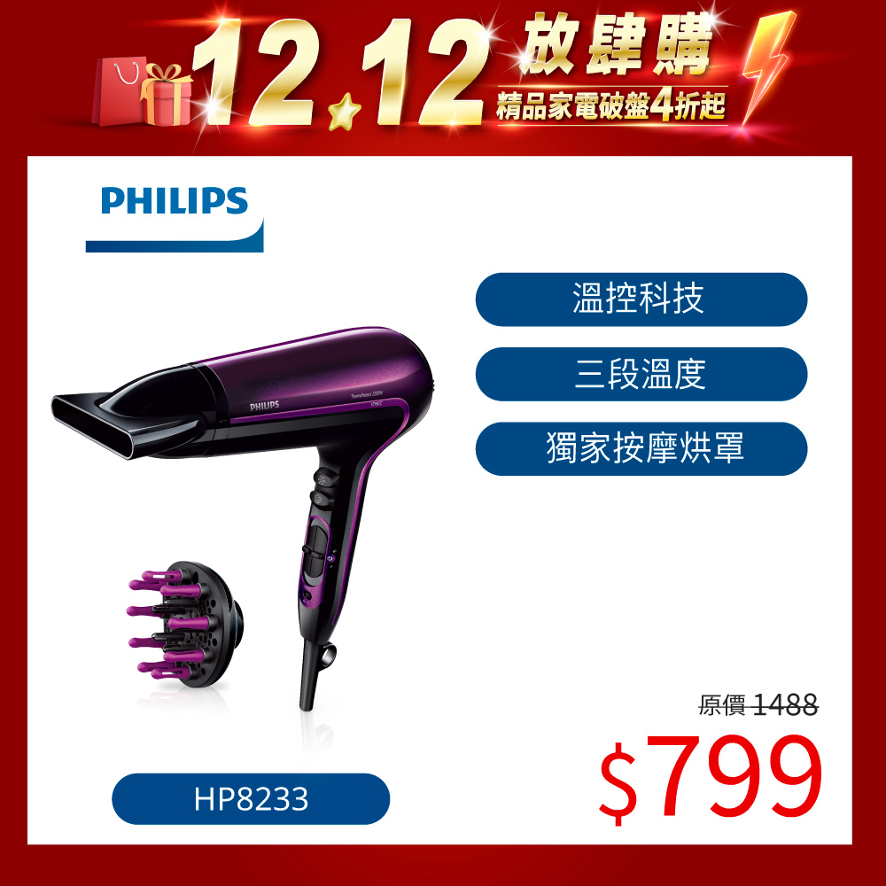 【1212 放肆購】飛利浦-沙龍級負離子SPA按摩護髮吹風機 HP8233