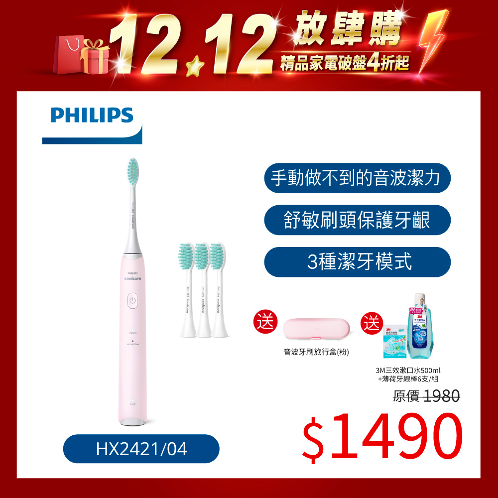 【1212 放肆購】Philips 飛利浦 Sonicare 音波震動/電動牙刷HX2421/04(送3入刷頭HX2023/02)