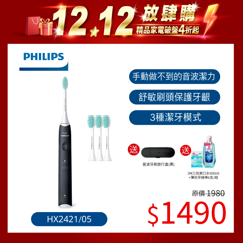 【1212 放肆購】Philips 飛利浦 Sonicare 音波震動/電動牙刷HX2421/05(送3入刷頭HX2023/02)