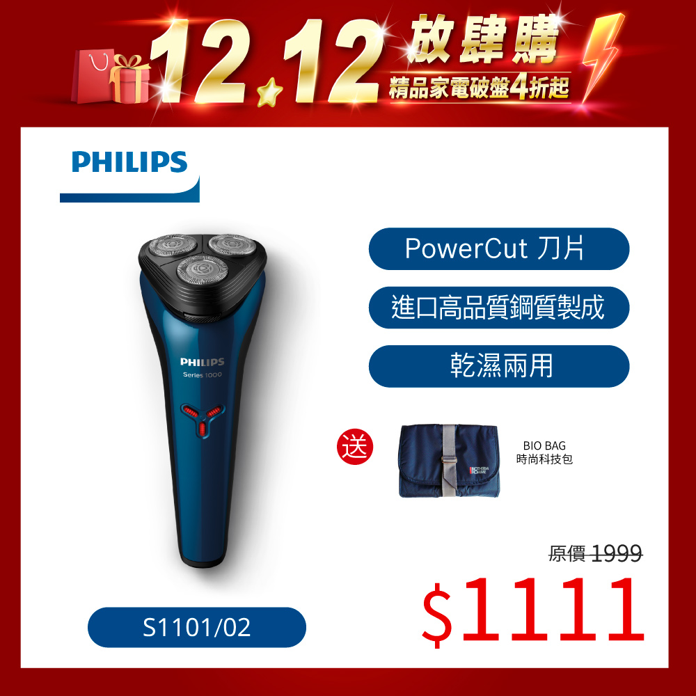 【1212 放肆購】Philips 飛利浦 水洗三刀頭電動刮鬍刀 S1101/02