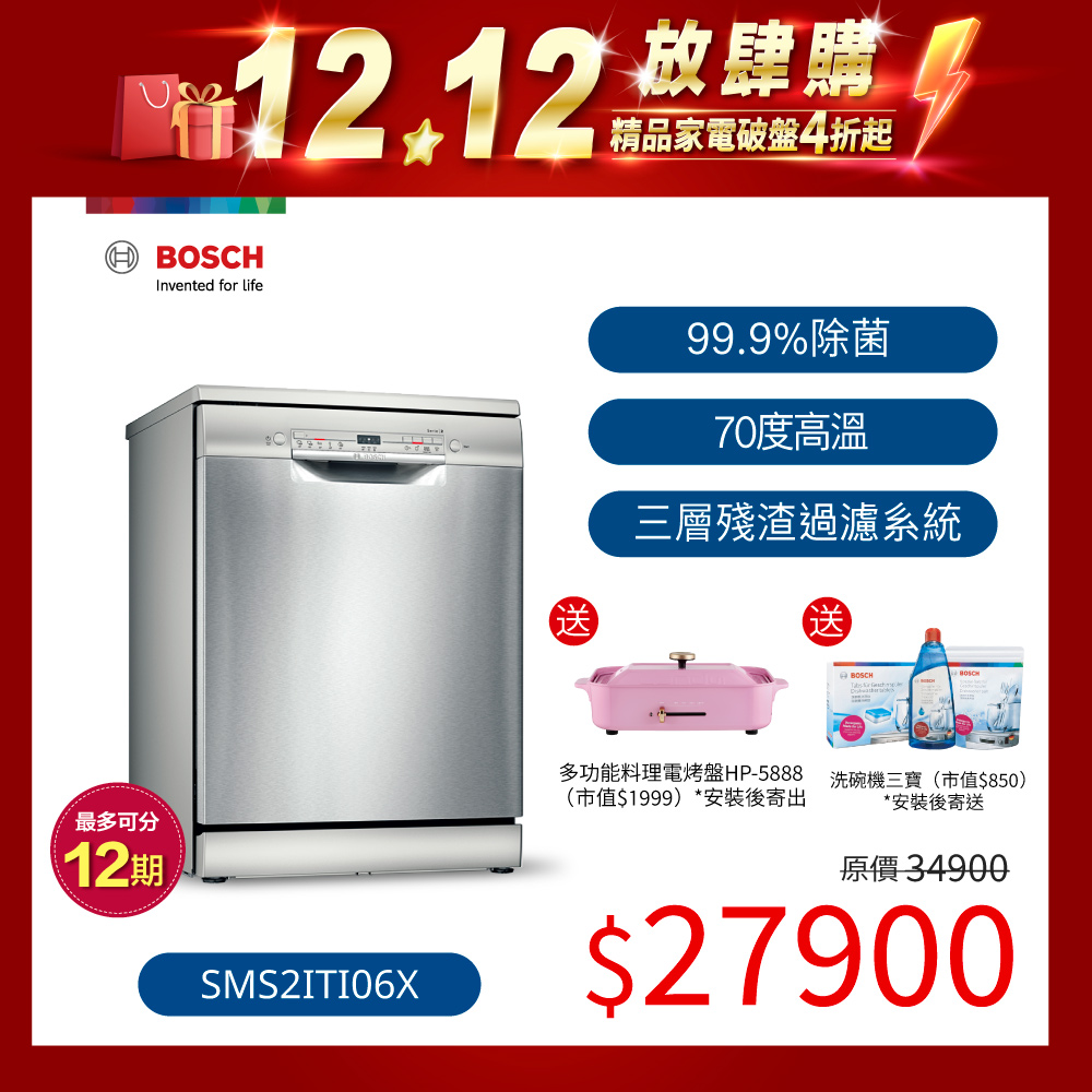 【1212 放肆購】BOSCH 2系列 60公分獨立式洗碗機 12人份(SMS2ITI06X)【含運+標準安裝】