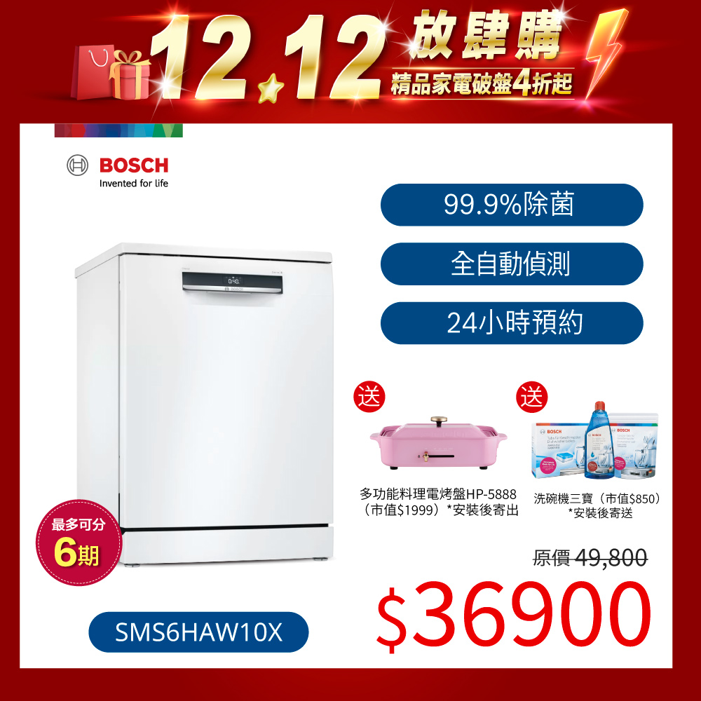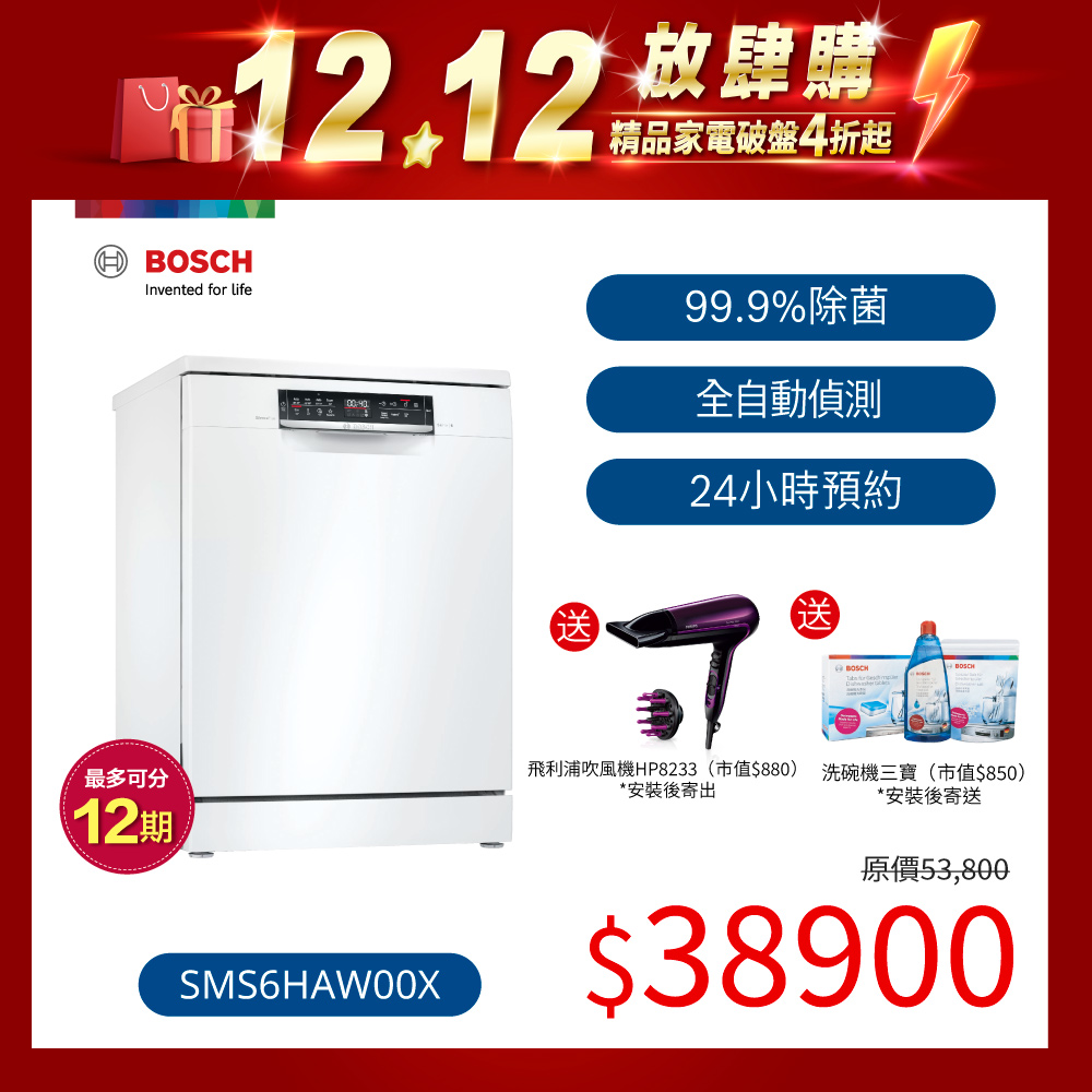 【1212 放肆購】BOSCH 6系列 60公分獨立式洗碗機 13人份(SMS6HAW00X)【含運+標準安裝】