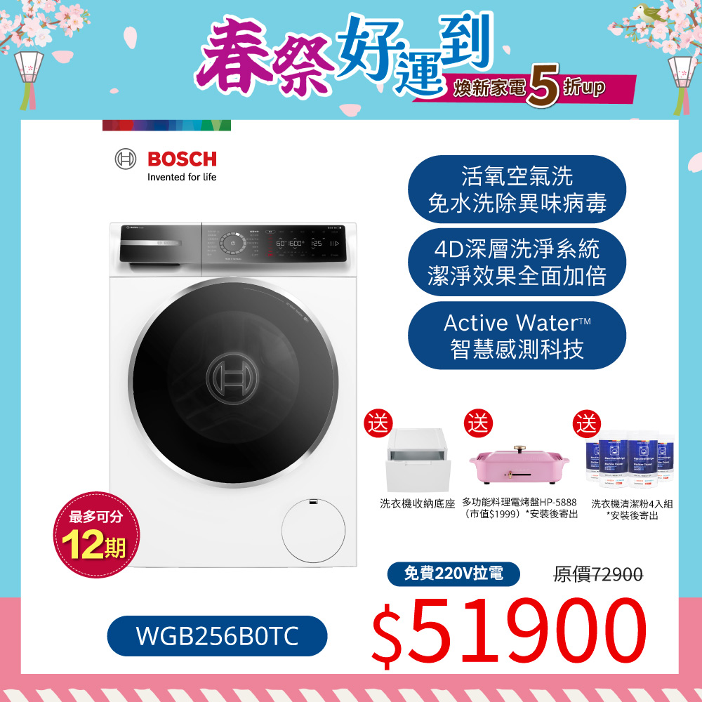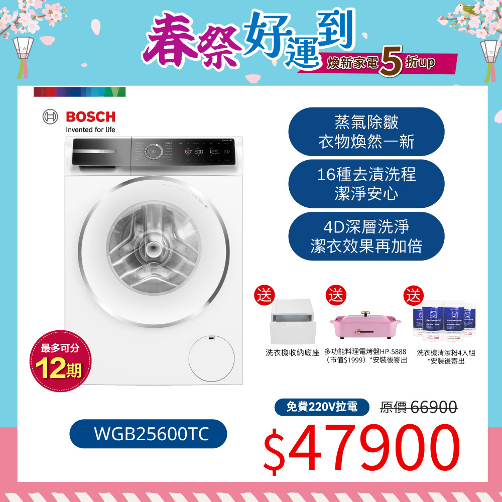 <預購>【春祭好運到】BOSCH 10公斤活氧滾筒洗衣機(WGB256B0TC)