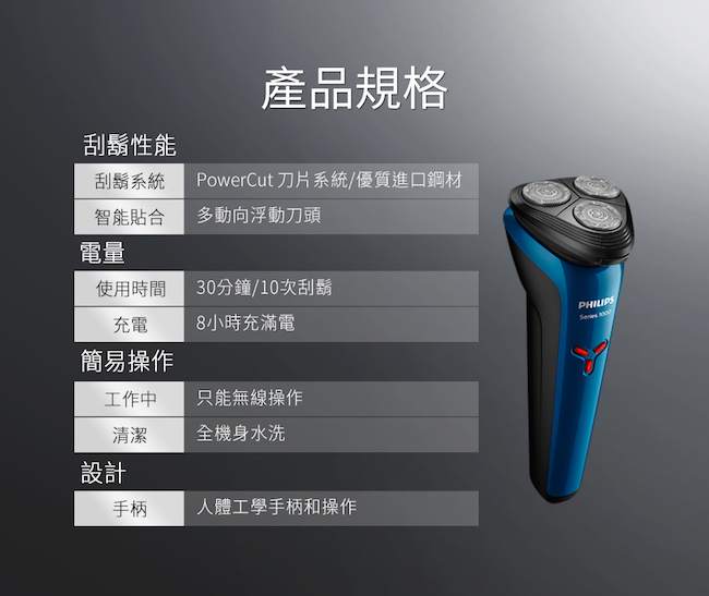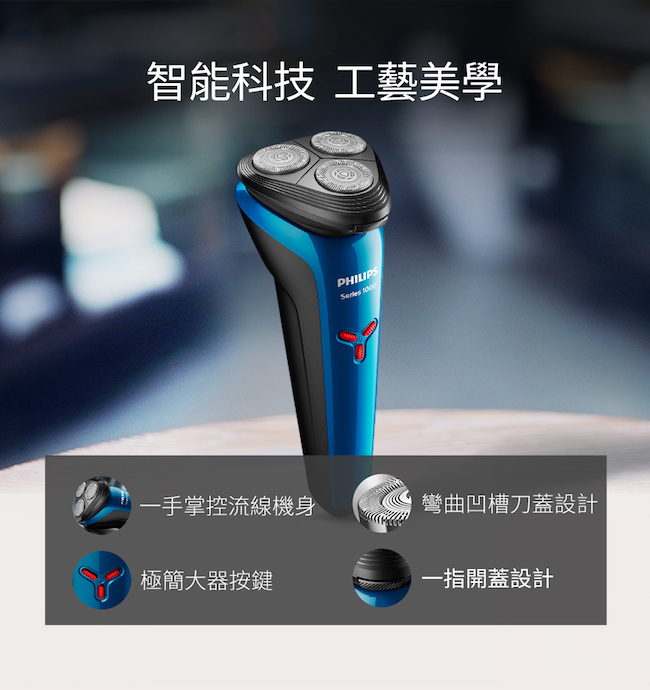 【1111 放肆購】Philips 飛利浦 水洗三刀頭電動刮鬍刀 S1101/02