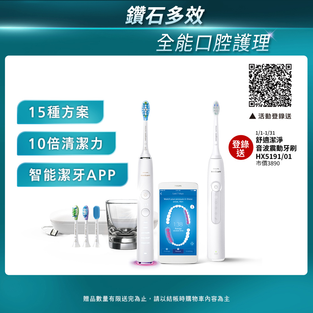 【Philips飛利浦】官方直營 Sonicare 鑽石靓白智能音波震動電動牙刷HX9924/02