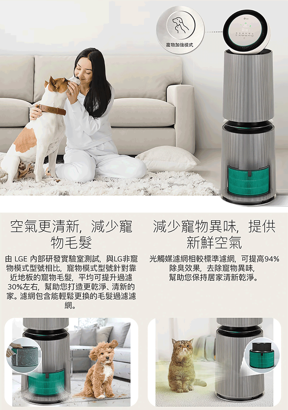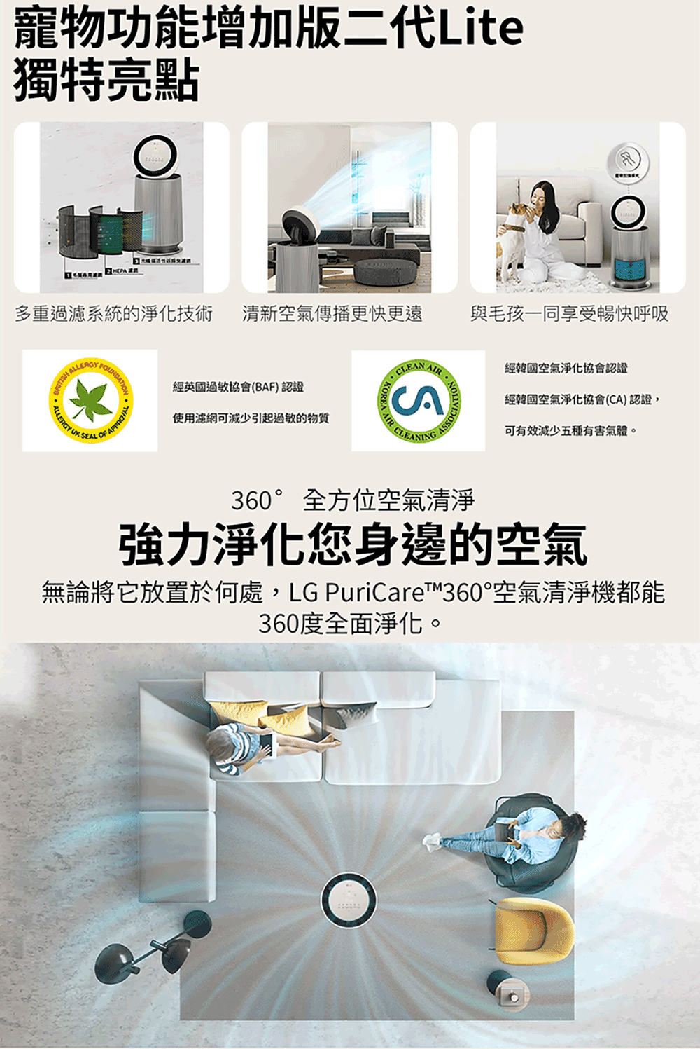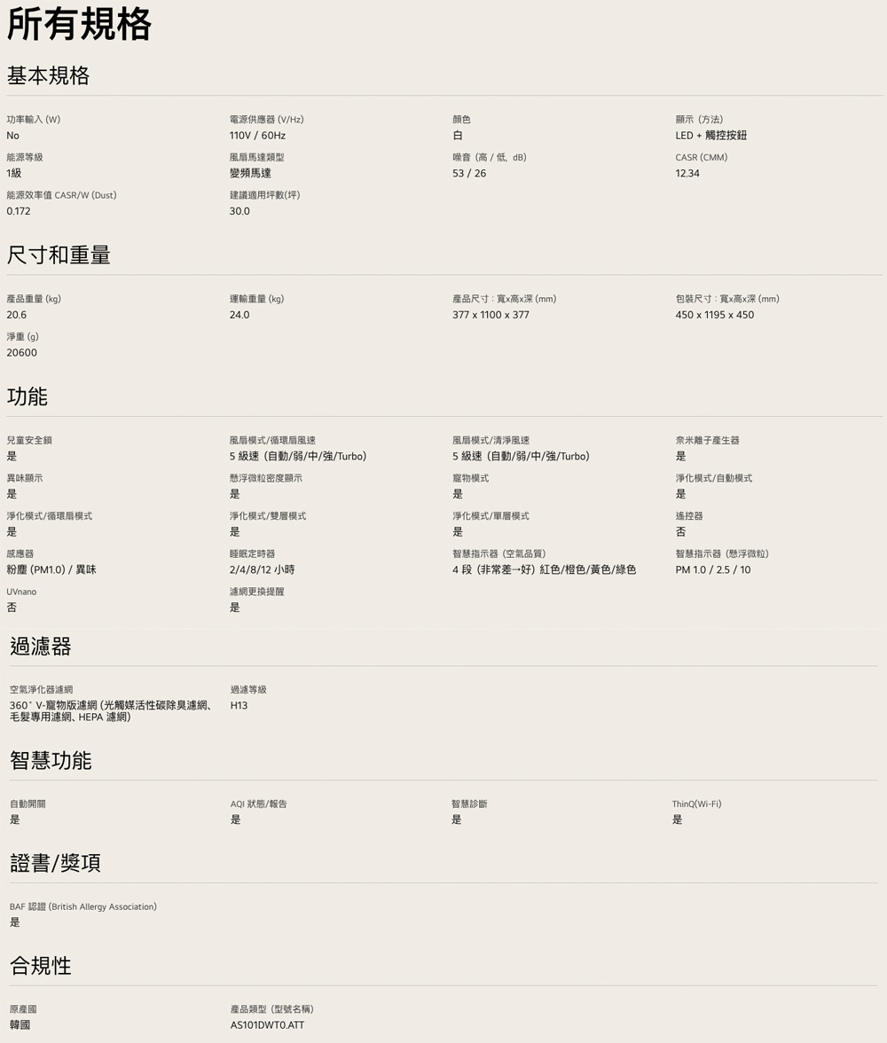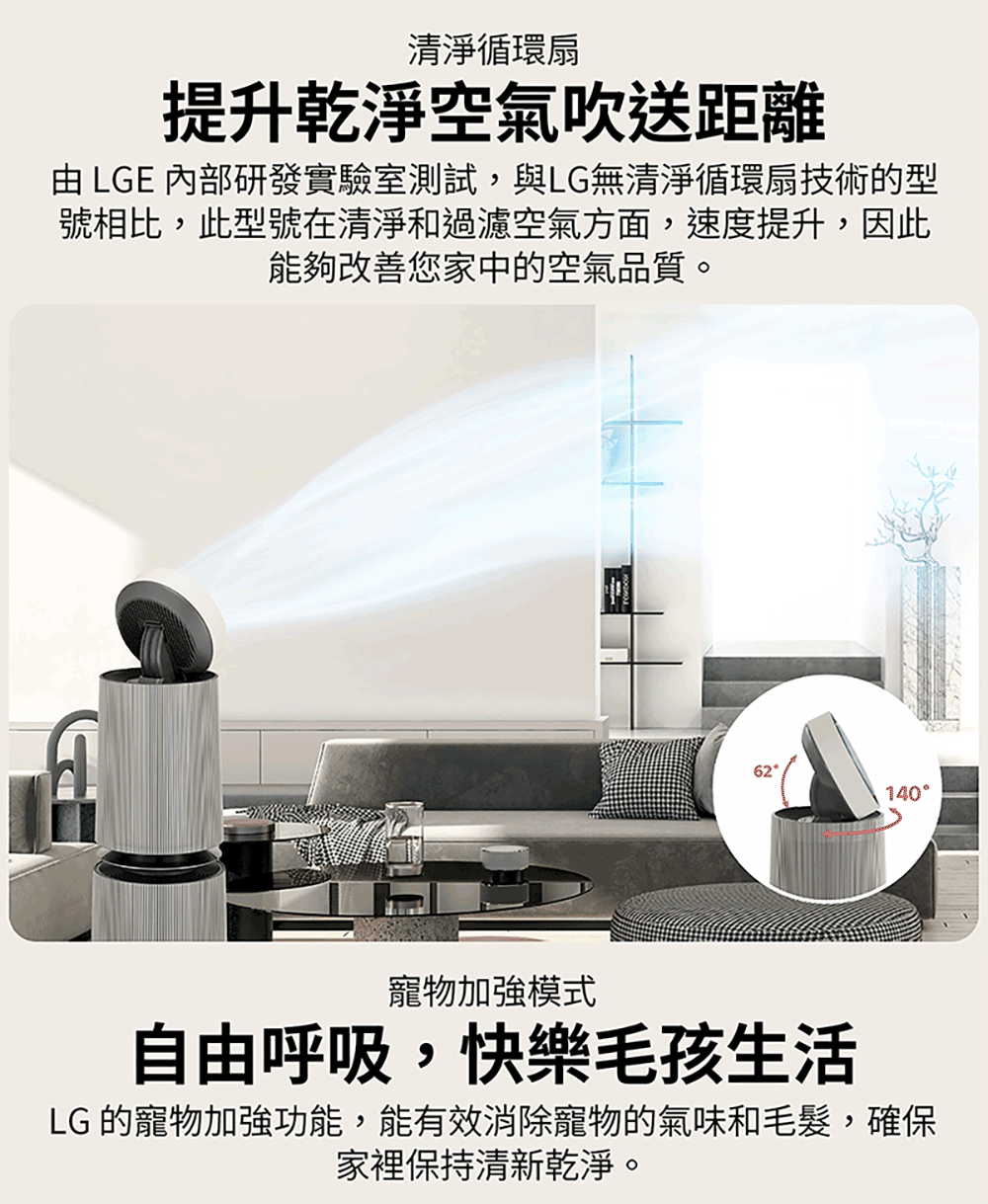 【LG 樂金】PuriCare 360°空氣清淨機 - 寵物功能增加版二代-LITE版/建議適用30坪 雙層(AS101DWT0)