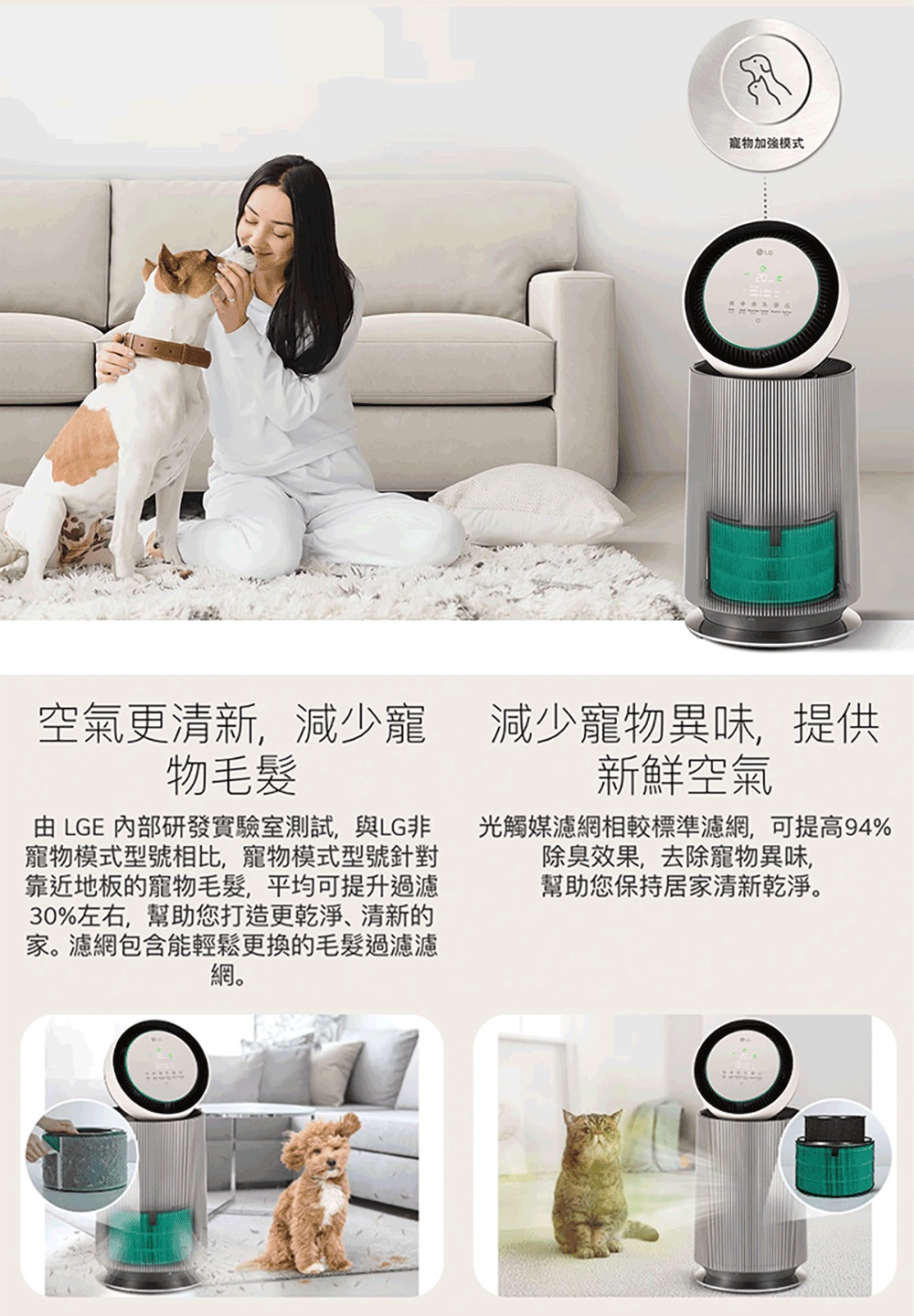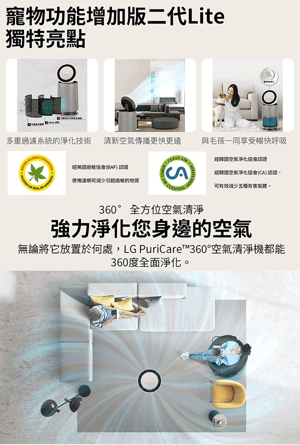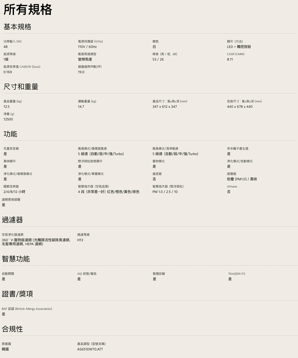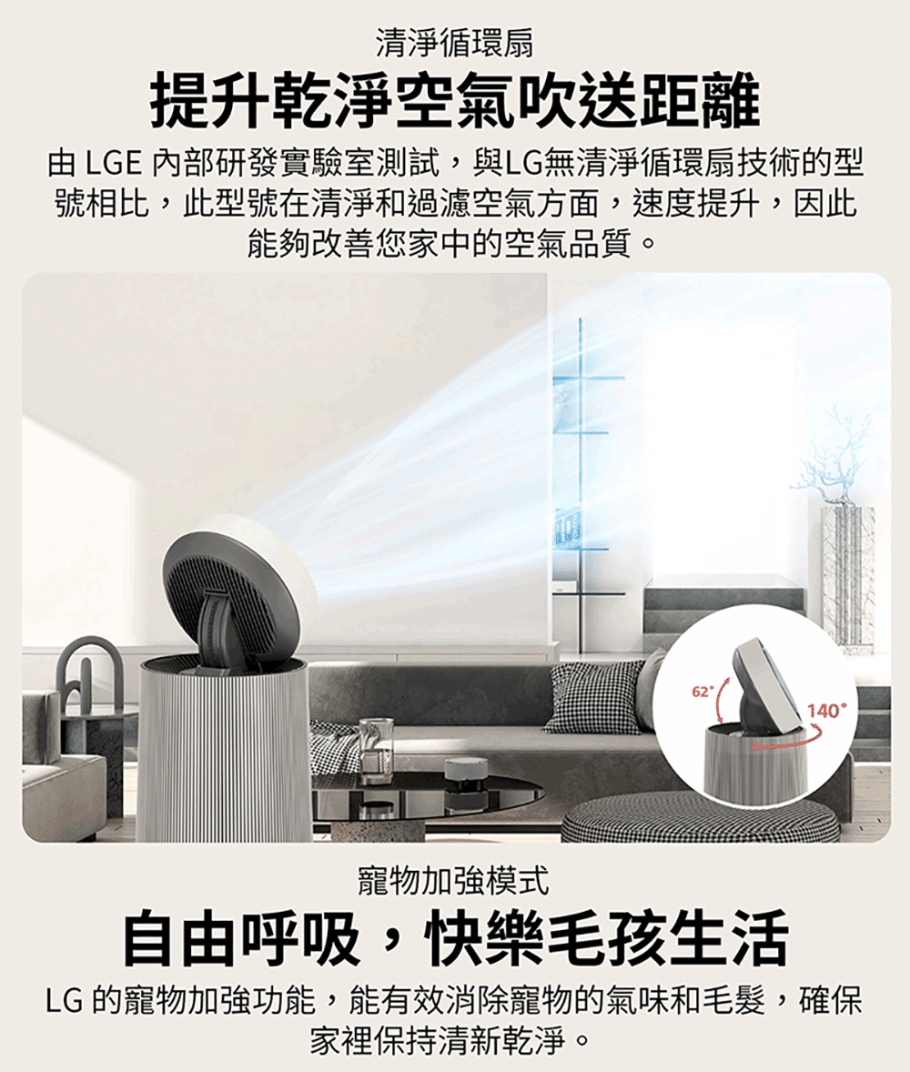 【LG 樂金】寵物版單層抗敏循環空氣清淨機-二代LITE版(適用19坪/AS651DWT0)